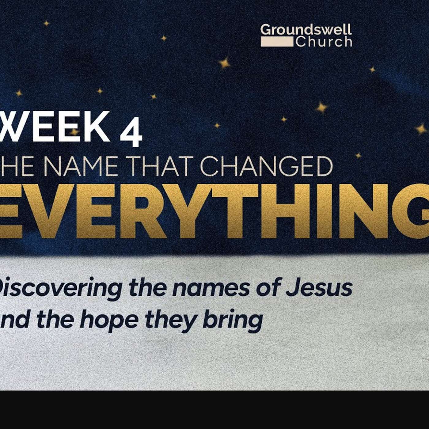 The Name That Changed Everything (Week 4) Groundswell Online Dec 14th, 2025Sign up to participate in Next Steps:https://groundswell.churchcenter.com/registrations/events/836922- Fill out our online connection card: https://groundswell.churchcenter.com/people/forms/114988-If you would like to GIVE towards the mission of Groundswell:https://groundswellchurch.ca/index.php/give/-You can also connect with us on social media, @GroundswellNShttps://www.facebook.com/groundswellnshttps://www.instagram.com/groundswellns-If there's any way that we can be praying for you, get in touch with our p...