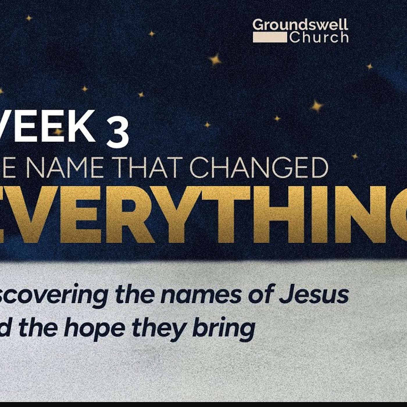 The Name That Changed Everything (Week 3) Groundswell Online Dec 7th, 2025Sign up to participate in Next Steps:https://groundswell.churchcenter.com/registrations/events/836922- Fill out our online connection card: https://groundswell.churchcenter.com/people/forms/114988-If you would like to GIVE towards the mission of Groundswell:https://groundswellchurch.ca/index.php/give/-You can also connect with us on social media, @GroundswellNShttps://www.facebook.com/groundswellnshttps://www.instagram.com/groundswellns-If there's any way that we can be praying for you, get in touch with our pr...